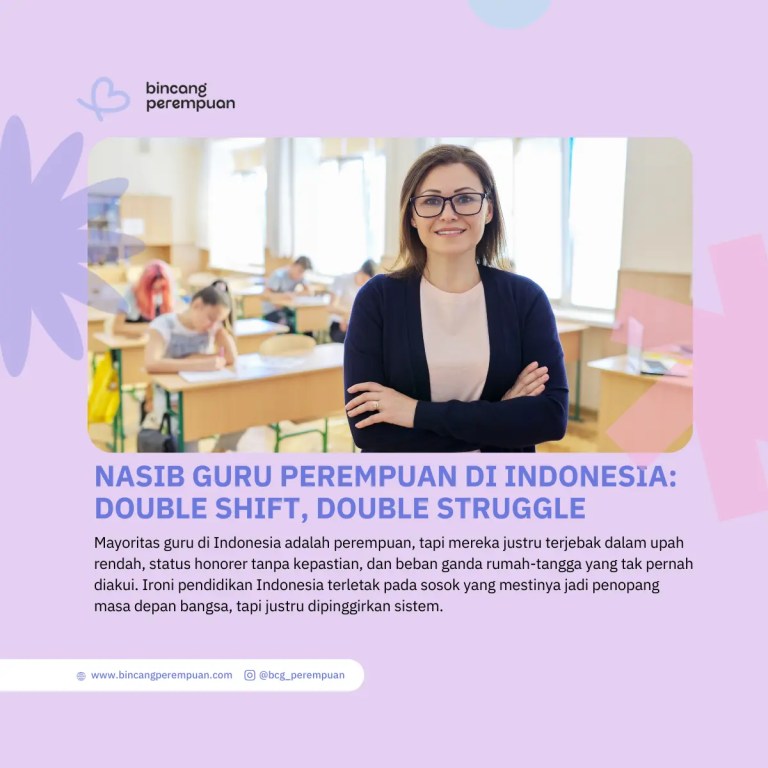 Bincangperempuan.com- Tiap tahun, isu pendidikan nggak pernah absen jadi bahan obrolan. Mulai dari kurikulum yang gonta-ganti, fasilitas sekolah yang timpang banget, sampai anggaran triliunan yang katanya buat masa depan bangsa. Tapi ada satu ironi yang jarang banget dibahas serius: nasib guru, terutama perempuan, yang jadi pihak paling rentan di sistem ini.