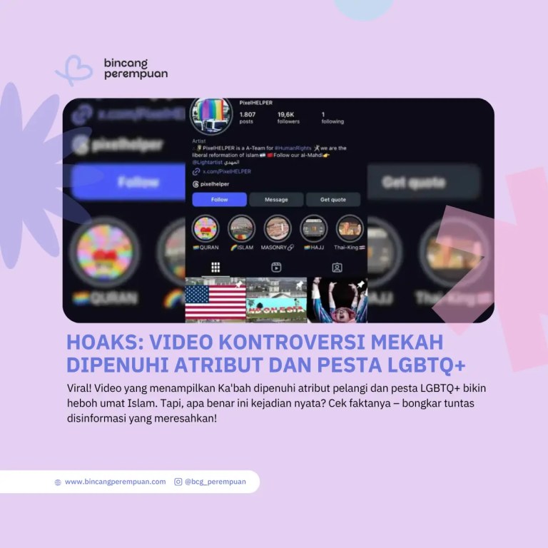 Berdasarkan hasil penelusuran Tim Cek Fakta Bincangperempuan.com, video “Mekah Dipenuhi Atribut dan Pesta LGBTQ+” yang beredar tersebut merupakan editan menggunakan teknologi AI (Artificial Intelegence) yang memuat disinformasi berjenis fabricated content alias hoax.