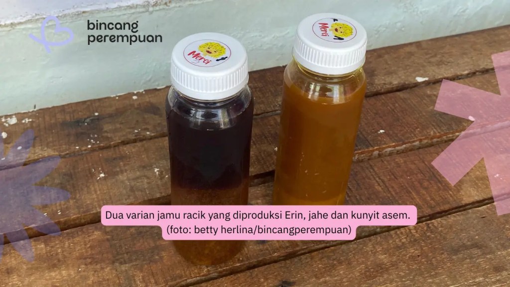 Pengetahuan turun temurun yang menjadi warisan keluarga, saat ini menjadikan Erin mahir membuat jamu racikan. Bukan sekadar jamu, tapi juga jadi penguat ekonomi keluarga.